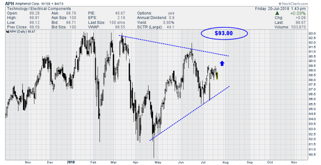 For investors in the shares, we recommend that you hold for 3 months or $93.00, whichever comes first. For longer-term investors, I believe APH is a solid addition to any growth portfolio over the next 12 months.